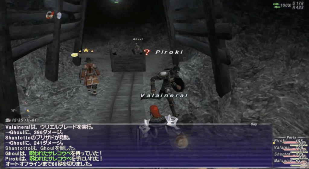 FF11ではクエストアイテムの場所は明示されず、十字キーを連打しながら「???」や「!」と表示されるターゲットを探して調べる必要があるので、初めて探す系のクエストをやるプレイヤーは面食らうと思いますw