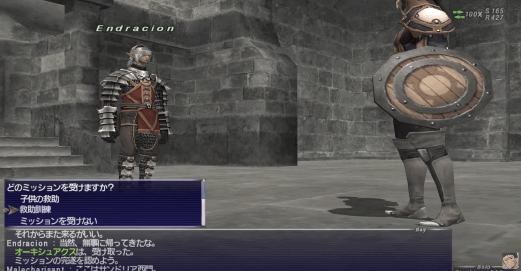 準備万端!ということで、サンドリアミッションを進めようとしますが目的のミッション「救助訓練」が受けられずに、何か条件が足りないのかも?と思ってなぜか「オークの斥候を倒せ」を何回も受注していますw
