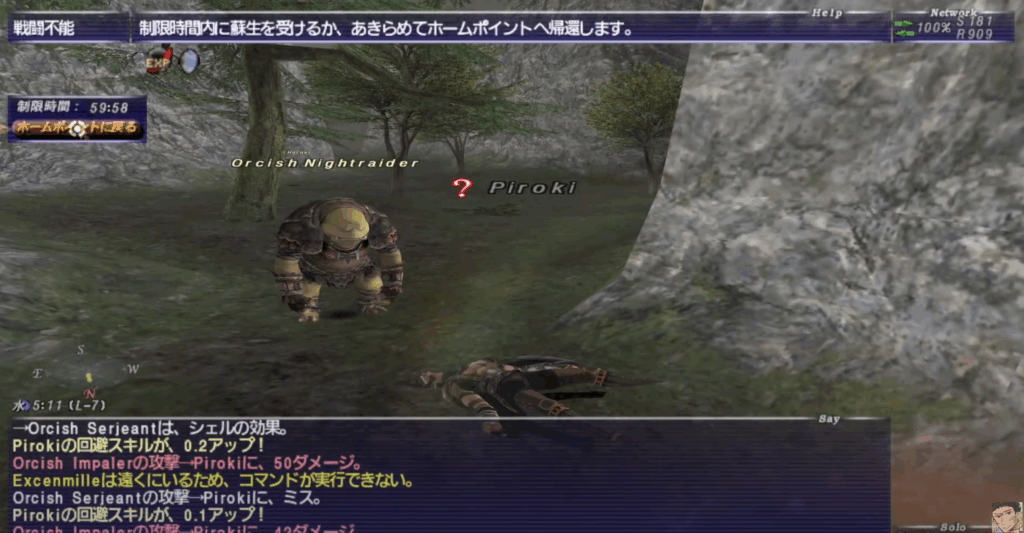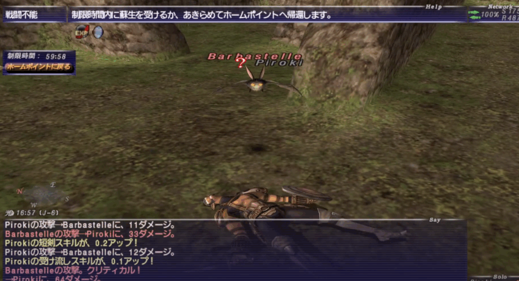 アドバイス通りの狩場に向かおうとしますが、途中で運悪くNM「Barbastelle」(この時本人はNMというものを知りません・・・)遭遇してしまい、死んでしまいます・・・