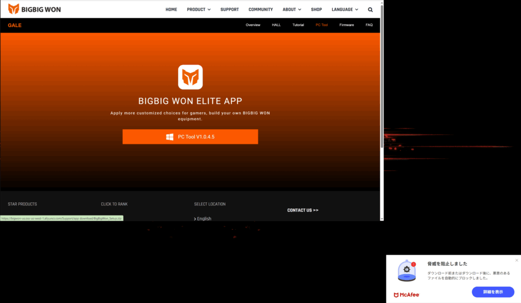 ただ、ソフトウェアをインストールする際にウイルス対策ソフト(マカフィー)が反応して「ウィルスが含まれています!」との警告が出た事・・・。一旦、ウイルス対策ソフトをオフにする事でインストール自体はできましたが少し不安ですw
