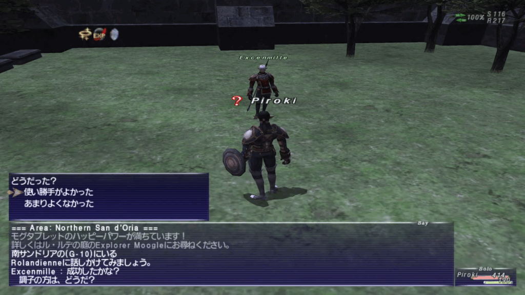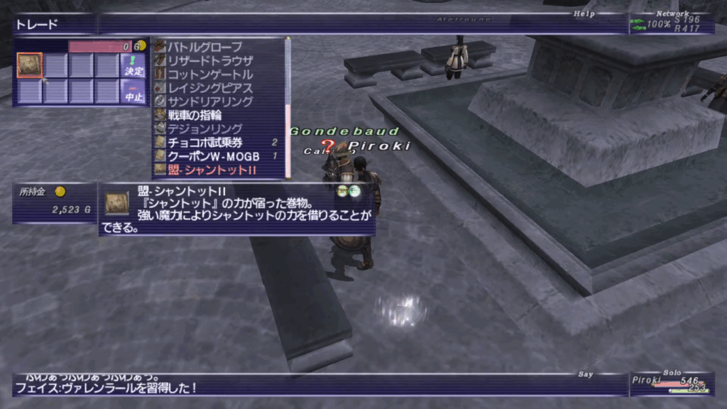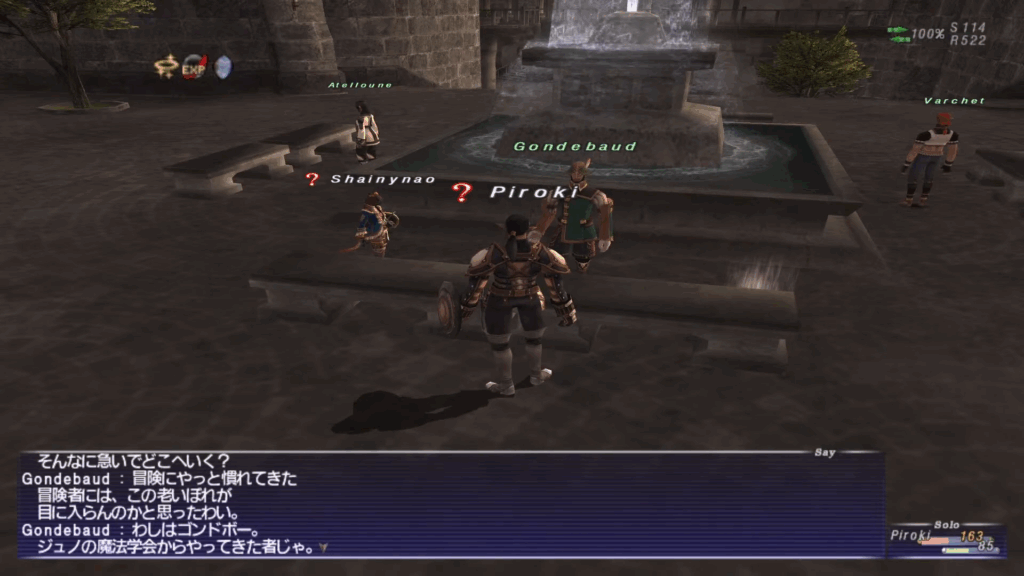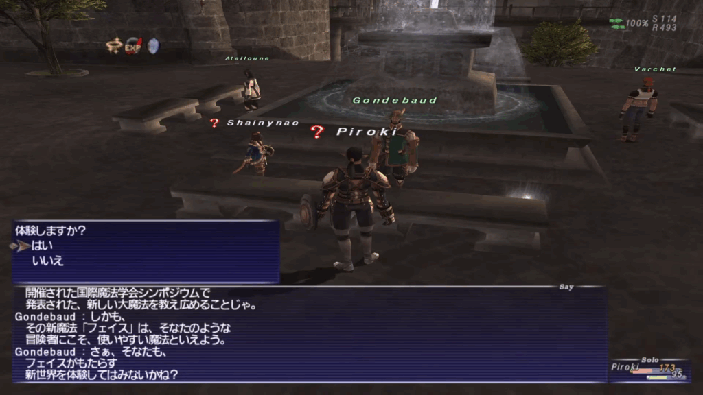 チュートリアルを完了し、レベルが5以上になったらジュノの魔法学校から新魔法「フェイス」を広めるために各国に来ているNPCに話しかけてクエストを開始します。サンドリアの場合は南サンドリア(L-6)の噴水の近くにいる「Gondebaud」が対象のNPCです。
