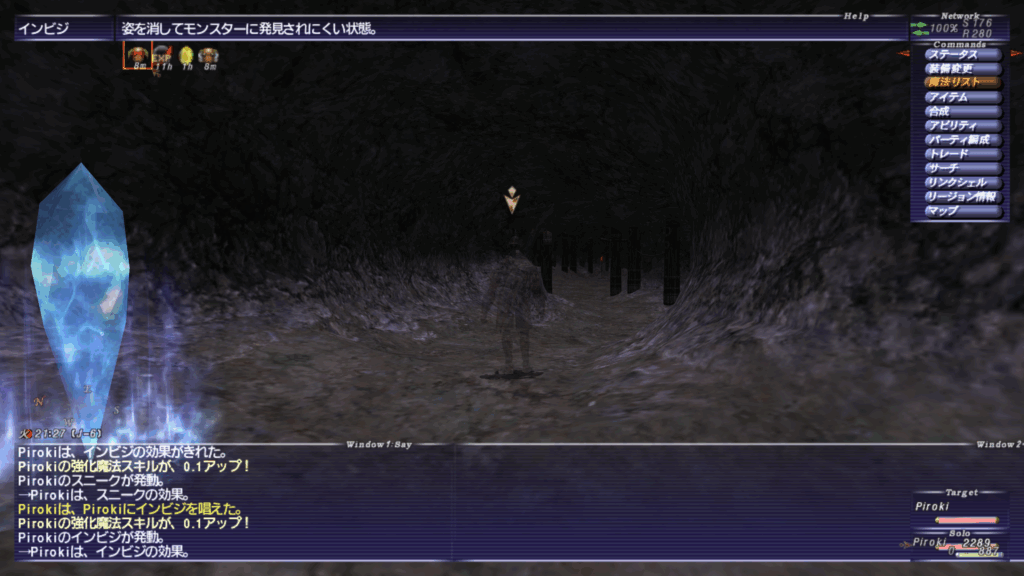 初めてきたフィールドや強敵のいるダンジョンなど、敵との戦いを避けながら探索したい時に便利な魔法がキャラクターを透明化する白魔法「インビジ」と足音を消す白魔法「スニーク」です。それを略して一般的には「インスニ」と呼ばれます。