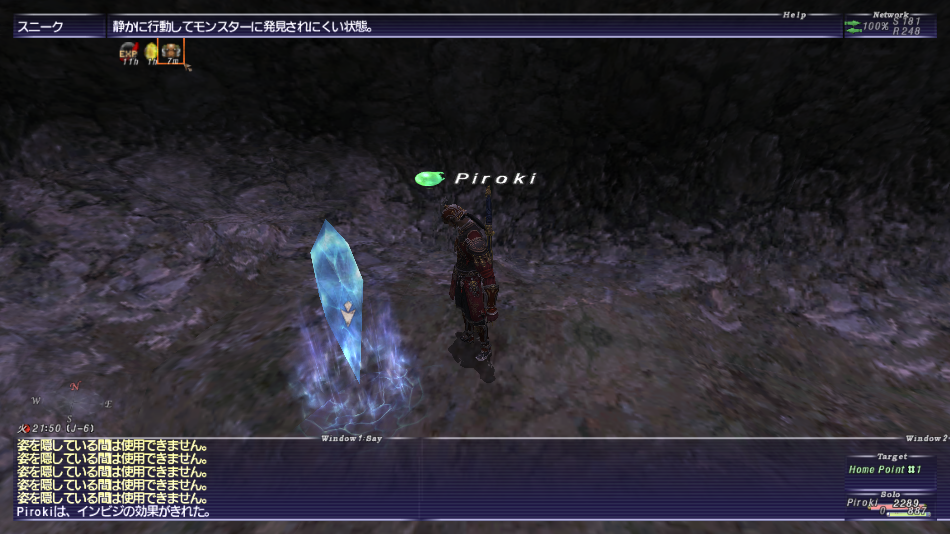 解除した後に、「インスニ」を更新すると「スニーク」「インビジ」の効果時間にズレが生じてしまい思わぬトラブルになる可能性があるので、適宜「スニーク」も解除してタイミングを合わせるなどの工夫が必要です。