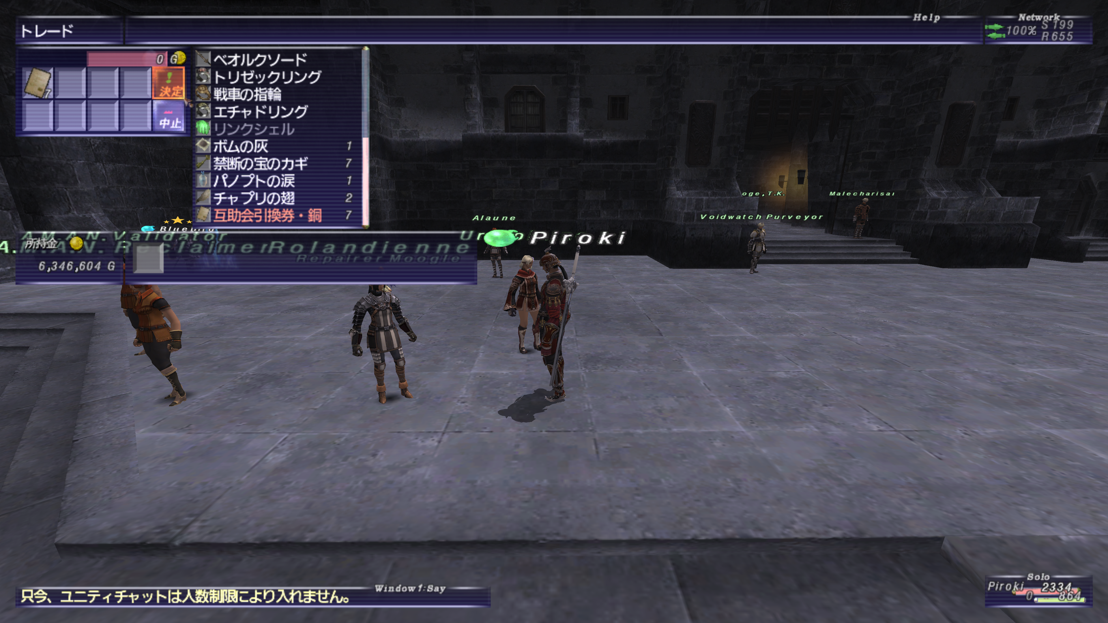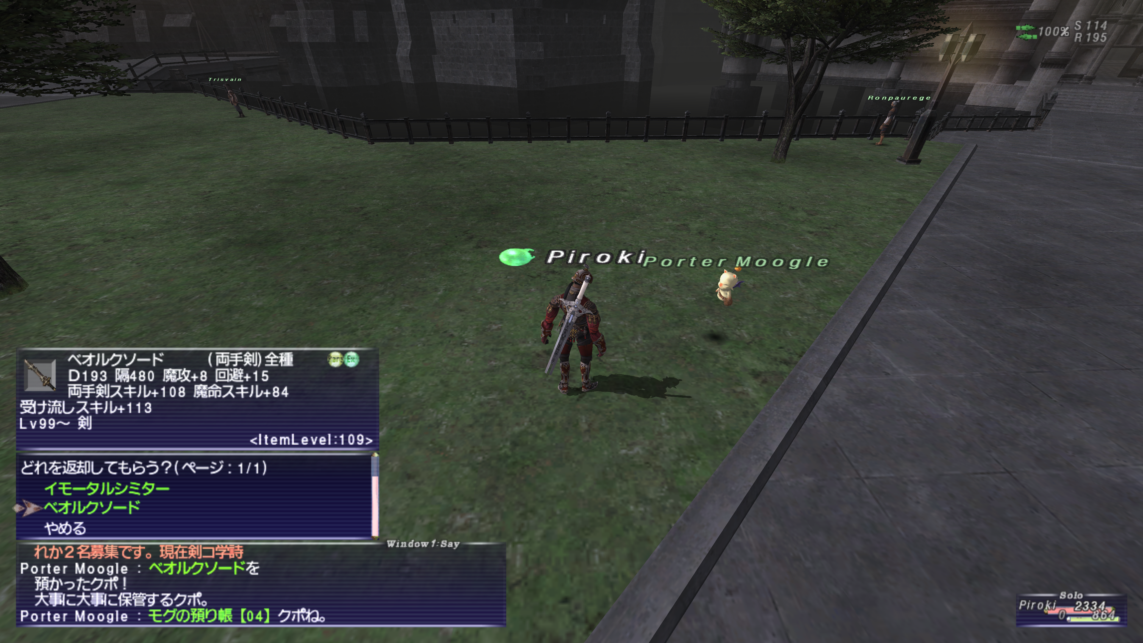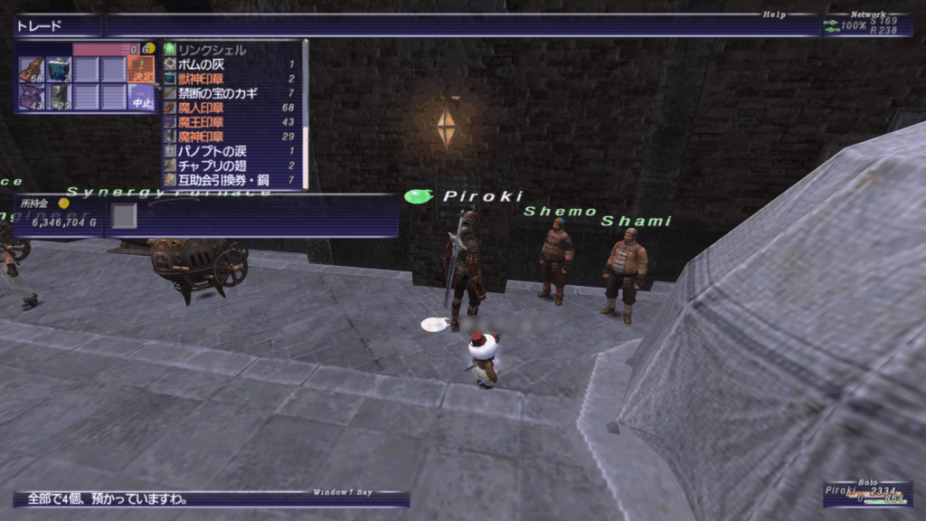 北サンドリア(K-8)などにいる「Porter Moogle」に預けたいアイテムをトレードする