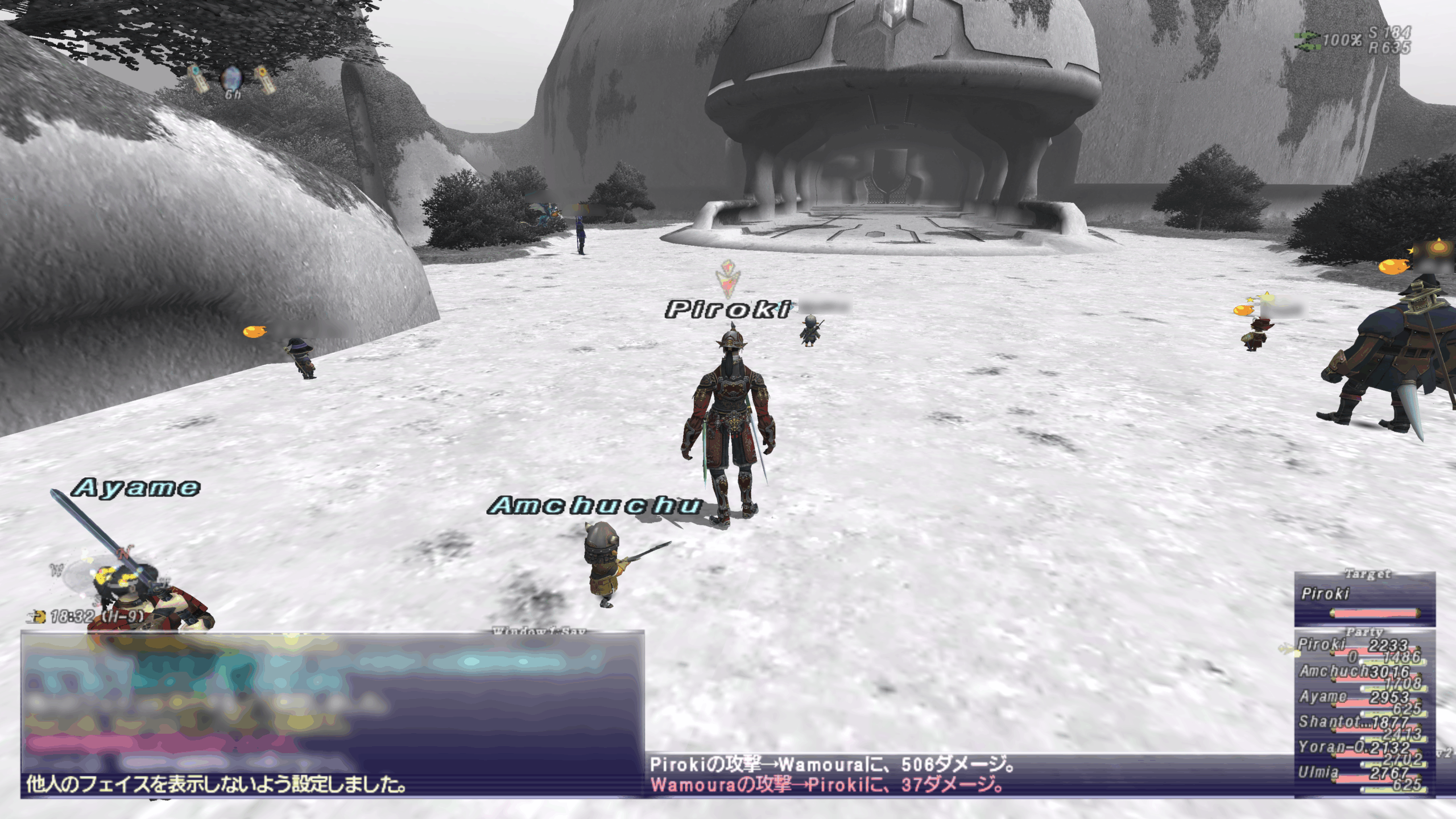 そこで活躍するコマンドが「/hidefaith on」です。このコマンドをチャット欄に入力すれば下記画像の様に他プレイヤーのフェイスが表示されなくなり、劇的に動作が軽くなります!