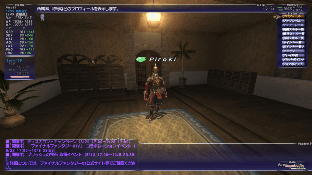 <me>の部分を<pet>に変えると、召喚獣やペットのステータスも確認できます。