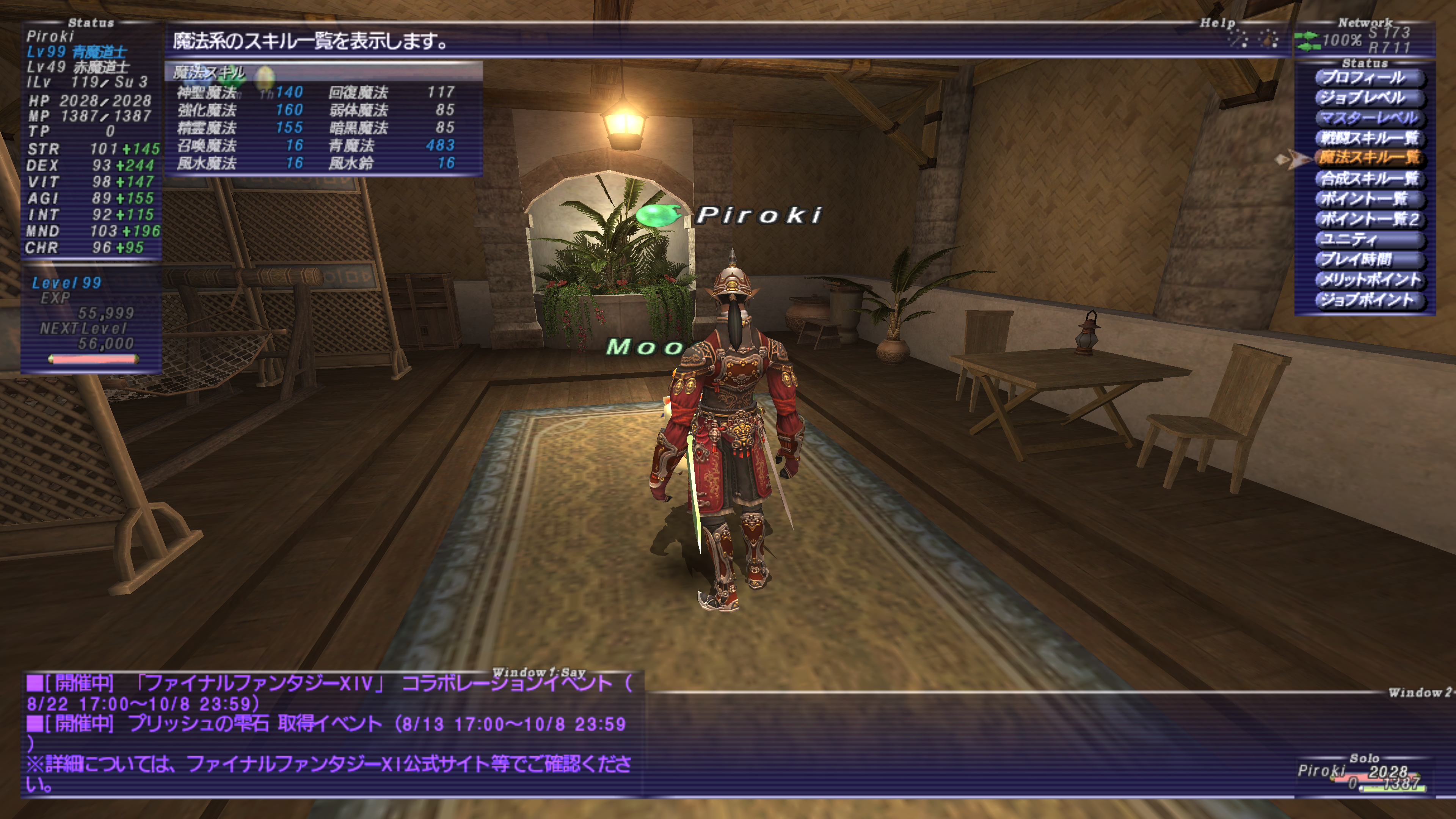 魔法スキルが上がりやすくなる効果とリフレシュを付与してくれる「モーグリ」を中心に、魔法命中を挙げてくれる「星の神子」やリフレシュIIを使ってくれる「コルモル」を使います。