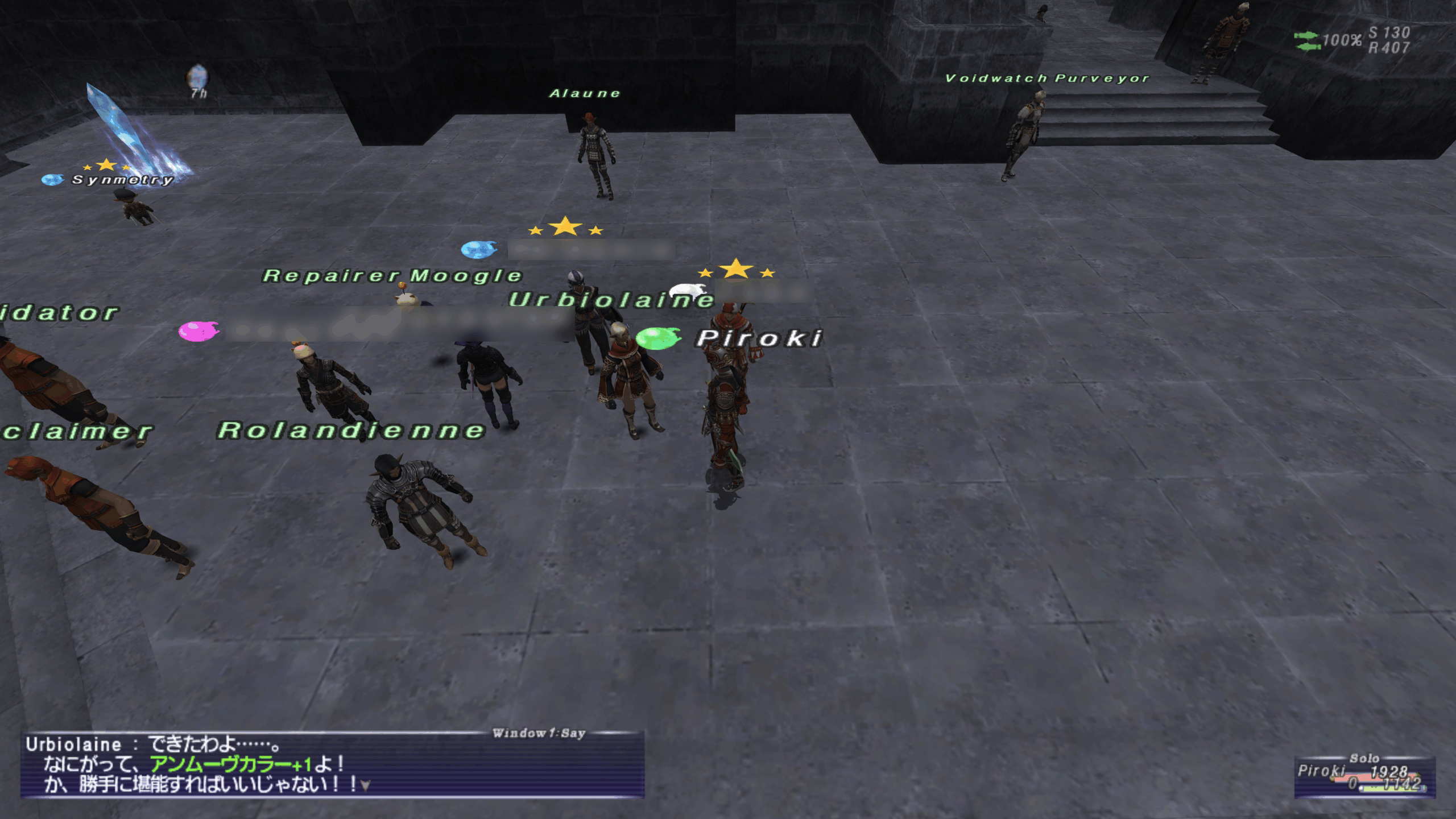 強化はヴァナ・ディール時間で0:00を超える必要があるので、しばらく待ってから、南サンドリアのG-10にいる「Urbiolaine」などのユニティ担当NPCに話しかけて強化が完了した装備を受け取ります。