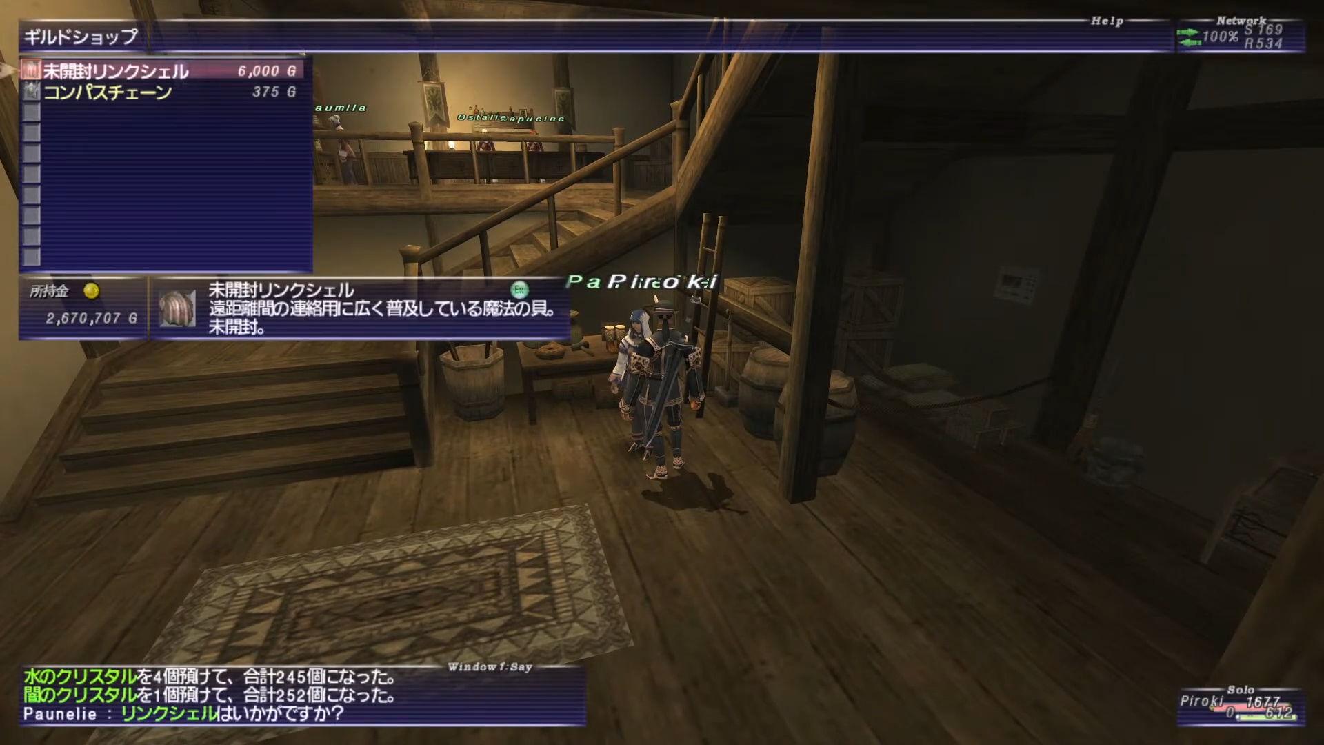 南サンドリアのE-8にいる「Paunelie」から「未開封リンクシェル」を買います。